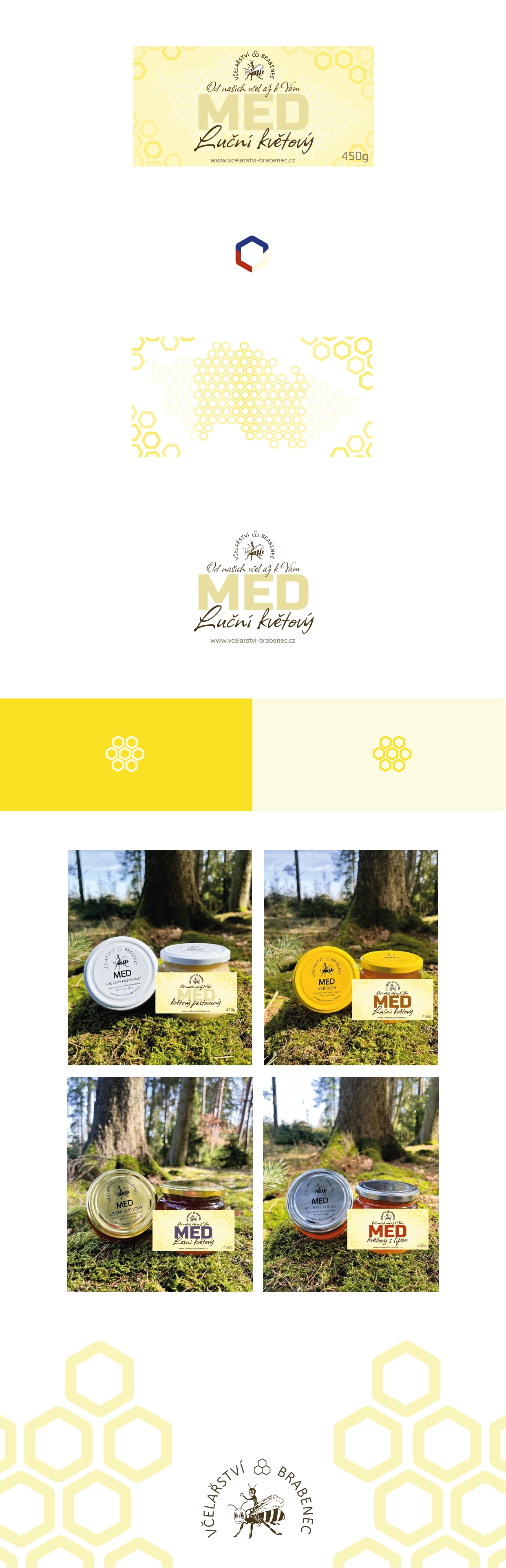 Můj návrh snaží propojit jednoduchost a podání, které zaujme všechny vrstvy milovníků medů. Víčka vašich sklenic se ke každému druhu mění a zvolil jsem design, který na ně naváže. Světlý podklad je zachován všemi druhy, přičemž udržuje svou silnou podstatu základu etikety. Mění se pouze název med v jeho podobě podtrhující důraz na tradici řemesla.