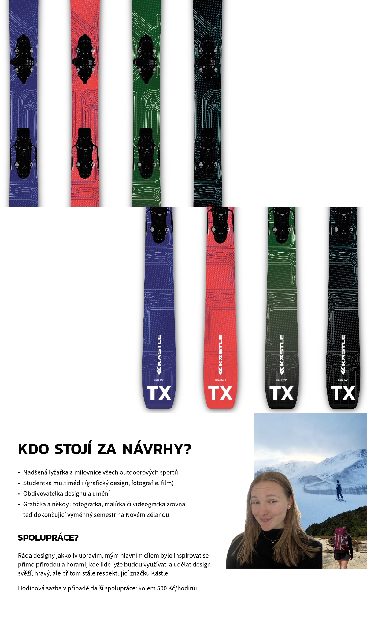 vloženo: 3.11.2025 4:14 poslední aktualizace: 22.11.2025 10:35Návrh hledá inspiraci především tam, kde se se bude produkt využívat - přímo v horách. Použitím vrstevnic jem chtěla vytvořit svěží a originální návrh, který ale respektuje samotnou značku. Věřím, že cílová skupina má ráda inovativní design, který znázorňuje přírodu a požívá zajímavé prvky. Stále se ovšem nejedná o extrémně výrazný návrh, který by nerespektoval tradici značky. Barvy i návrhy je možno jakkoliv upravit. V prezentaci je odprezentován koncept a jsou zobrazeny všechny návrhy, v souboru design pak jedna kombinace barev (nelze nahrát pdf ani soubor ai.). Veškeré prvky jsou vektorové, není tedy problém je na lyže natisknout v jakékoliv velikosti.