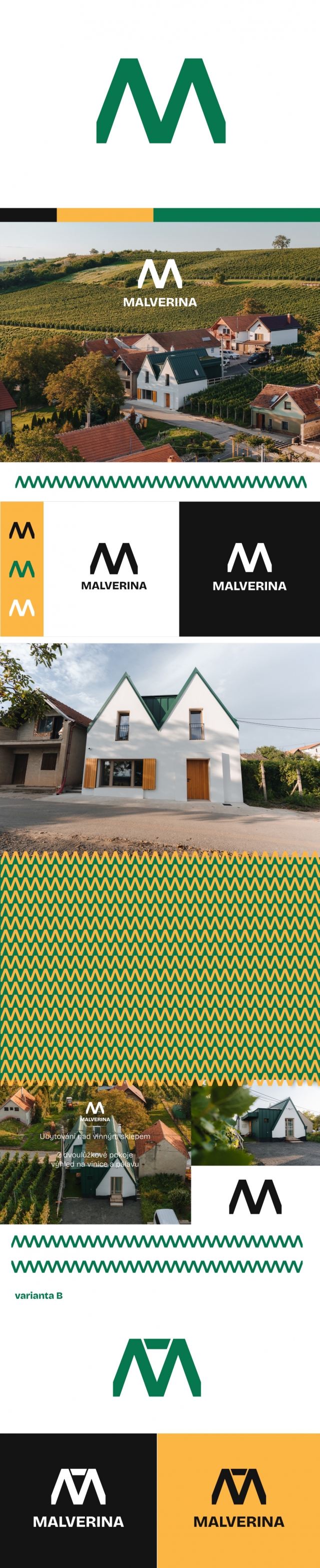 připravil jsem vizuální návrh pro ubytování Malverina. Snažil jsem se, aby byl návrh jednoduchý, čitelný a vycházel přímo z místa a architektury domu, ne z nějakého obecného stylu ubytování.