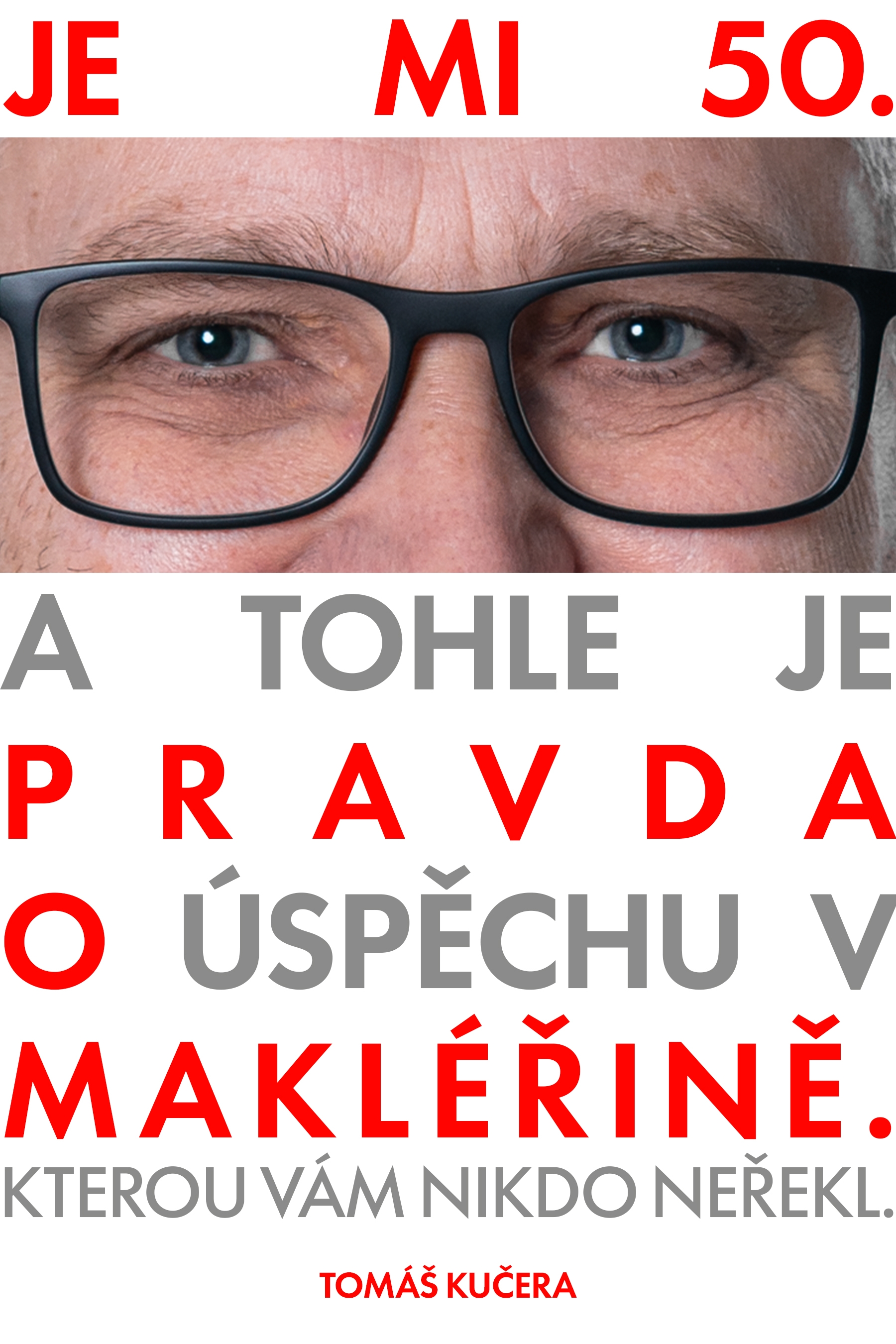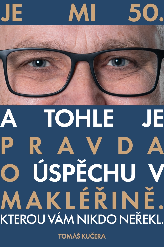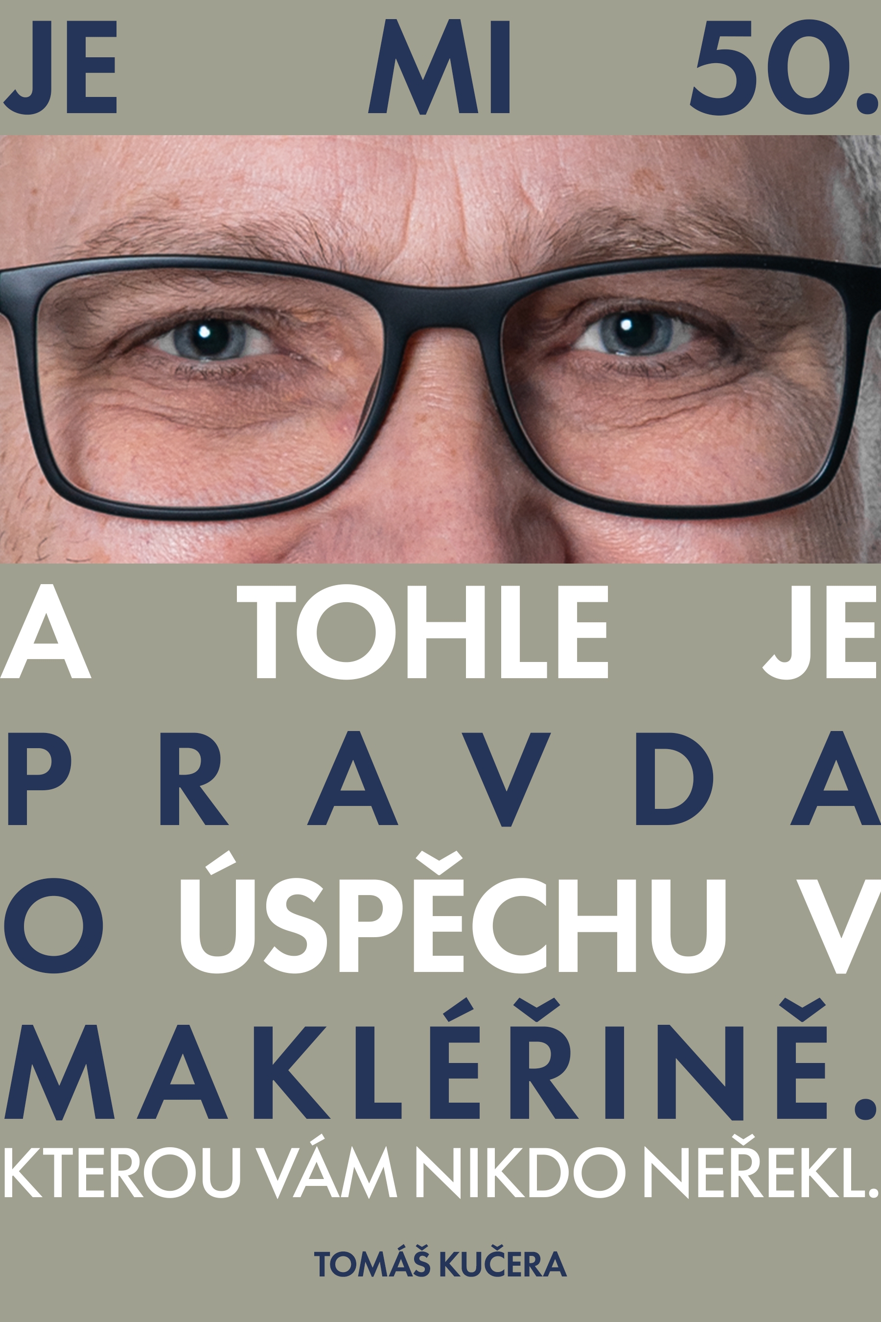Dobrý den. Moc se mi líbí váš návrh. Můžeme jej maličko doladit? Ubral jsem jedno slovo, aby mohla být písmena větší. A zároveň jsem to druhé sdělení změnšil, je to dovětek, který nění tak důležitý. A některá slova jsem ještě barevně odlišil. Mohl bych požádat o úpravu viz níže? Případně zkuste nakombinovat i jiné barvy než modrou a žlutou. Ale samozřejmě takové, aby byly kontrastní a výrazné. Moc děkuji. JE MI 50. (OČI)PRAVDAO ÚSPĚCHU VMAKLÉŘINĚ.KTEROU VÁM NIKDO NEŘEKL.