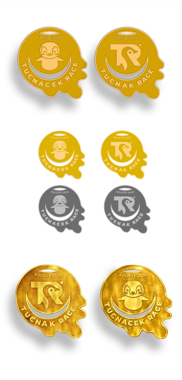 vloženo: 6.03.2026 2:04 poslední aktualizace: 6.03.2026 12:00Návrh pracuje s atypickým tvarem medaile, jehož silueta připomíná rozstřik bláta (kaliště), který je pro závod Tučňák race typický. Organický okraj narušuje klasický kruhový tvar medaile a odkazuje na dynamiku, překonávání překážek a atmosféru závodu.
