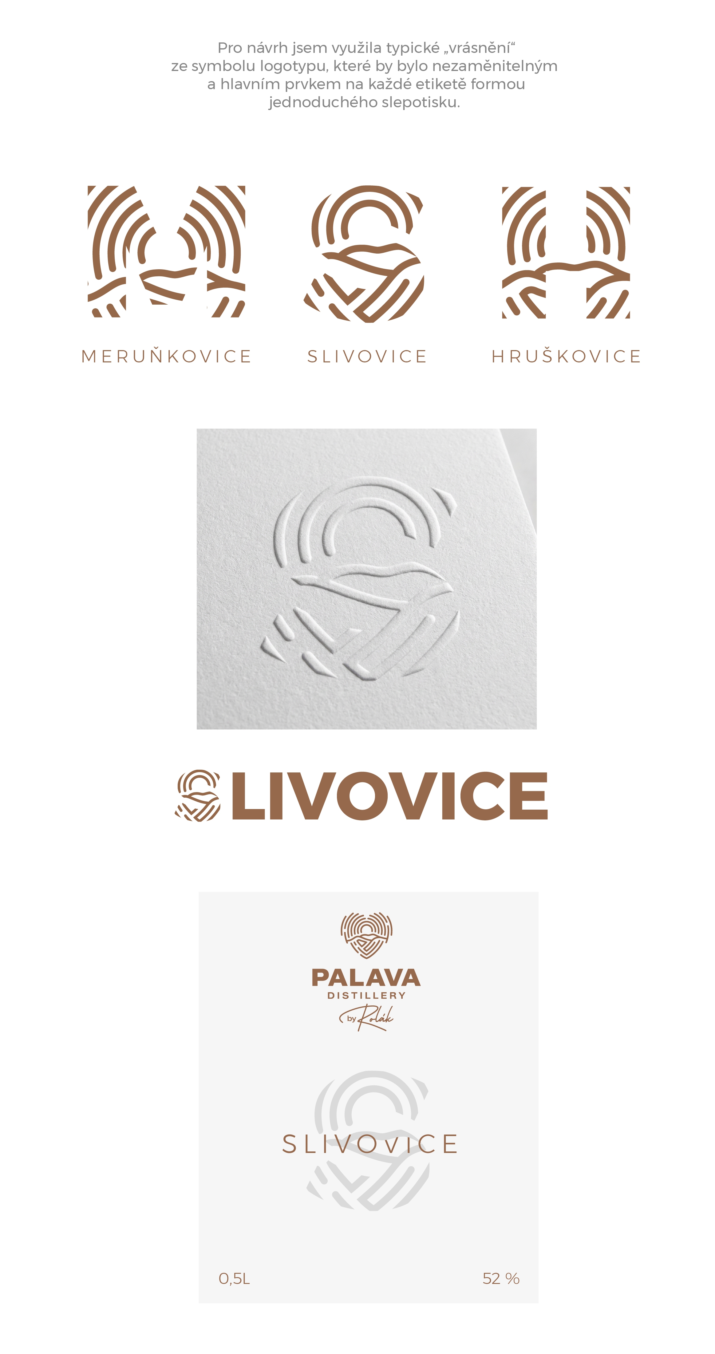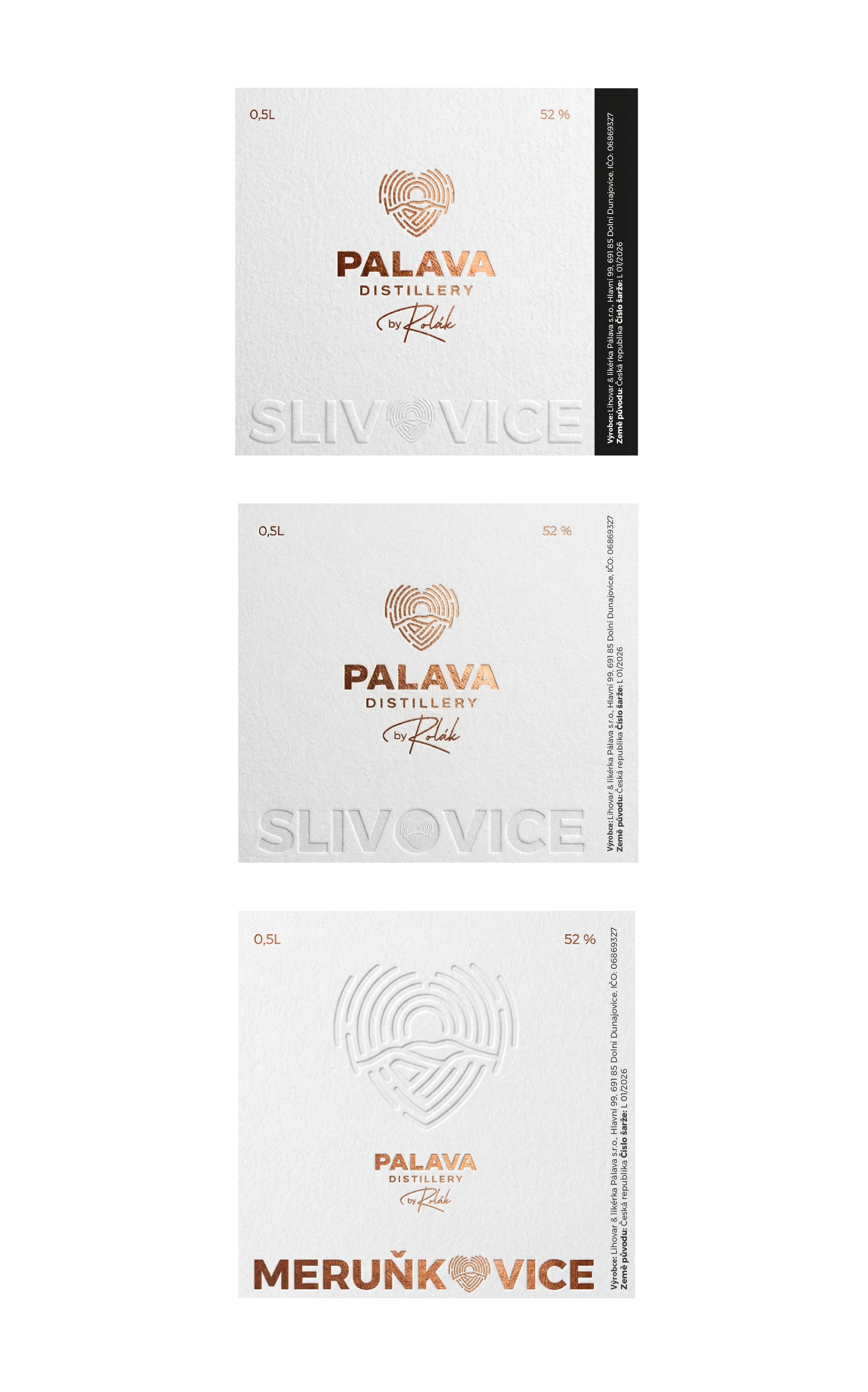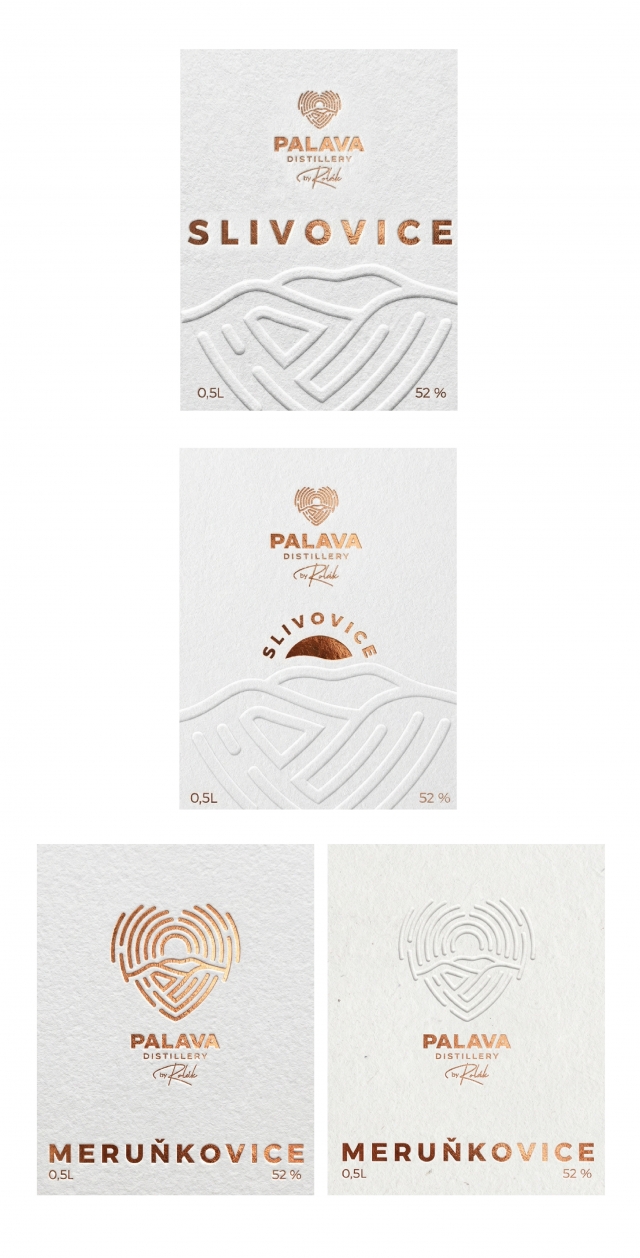 Dobrý den,nápad s využitím vrásnění se mi moc libí. Zrovna u písmene S to ale bohužel hodně připomíná etikety lihovaru Svachovka.Jaké by bylo prást název destilátu u spodní hranice etikety?Jedna z mých představ byla, že logo (jen srdíčko) by bylo na pozadí celé etikety 3D lakem či embossem